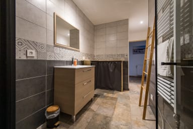 Deux grandes salles de bains sont à votre disposition, l'une équipée d'une douche et l'autre d'une baignoire, pour répondre à tous les besoins de confort.